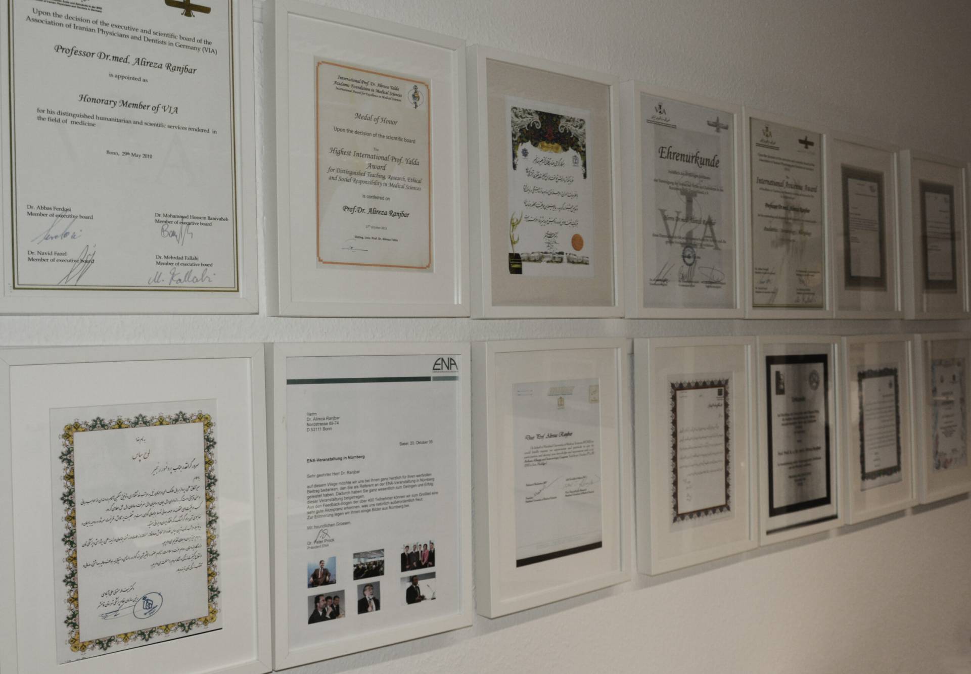 – جایزه و لوح علمی رازی برای خدمات برجسته در دانش پزشکی، بالاترین نشان علمی انجمن پزشکی آلمانی-ایرانی، هامبورگ، آلمان، ۲۰۱۶
